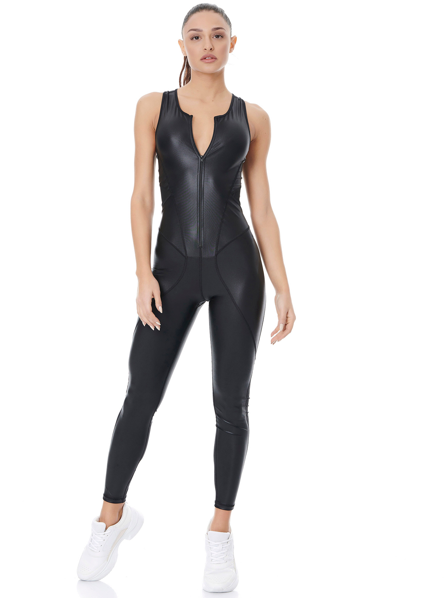 Dazzle High Power jumpsuit with a rubber zipper that follows the body and strategically positioned sports transparency panels across the waist and low legs makes you look and feel wonderful by creating a slimmer image.